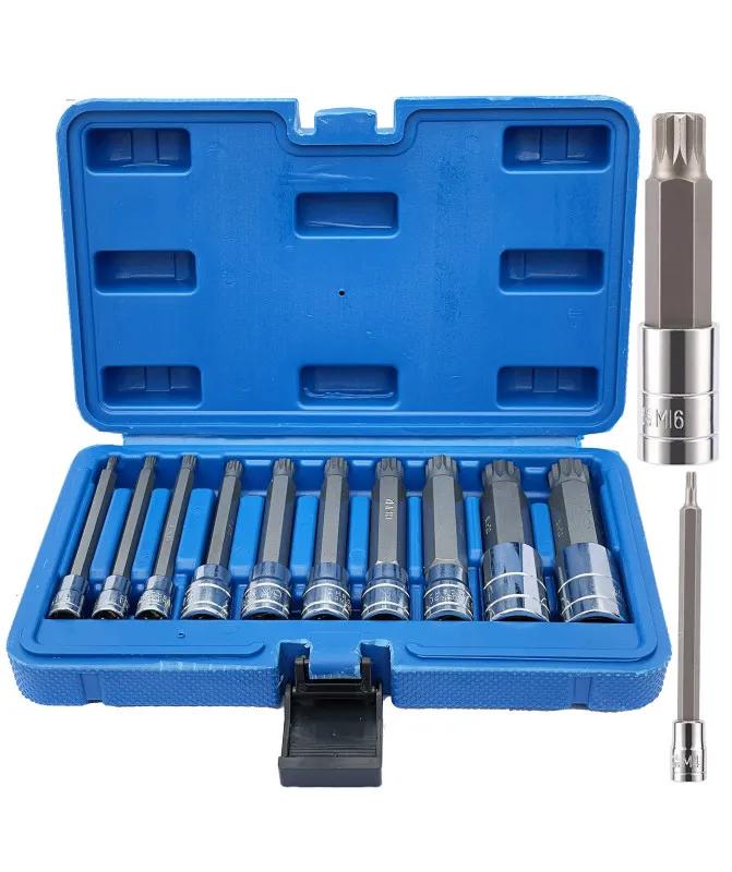 ●COPAS CON PUNTAS ESTRIADAS,12 LADOS TORX (M)10 PIEZAS,RAÍZ 3/8-1/4 AGUJERO CENTRO SPLINE