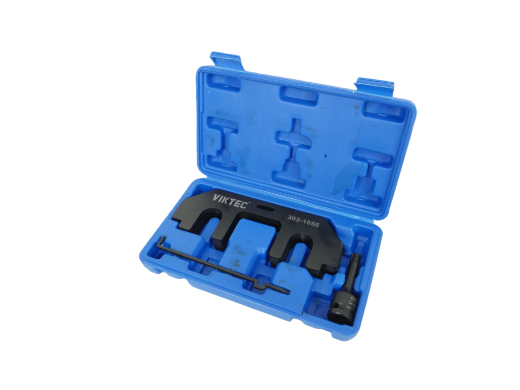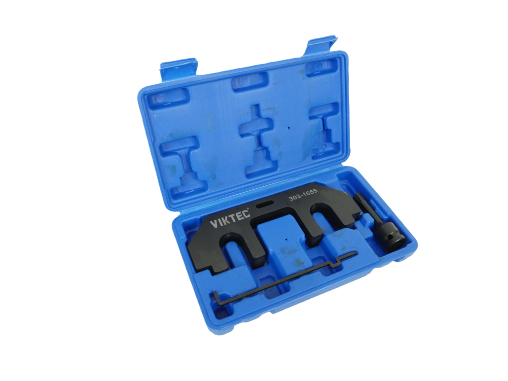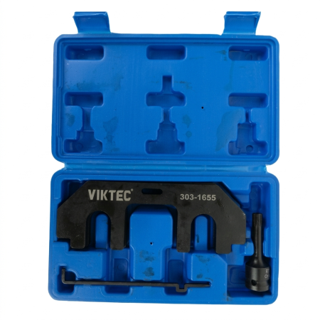 Este kit permite posicionar correctamente el cigüeñal y los árboles de levas, garantizando una sincronización exacta del motor durante la reparación.